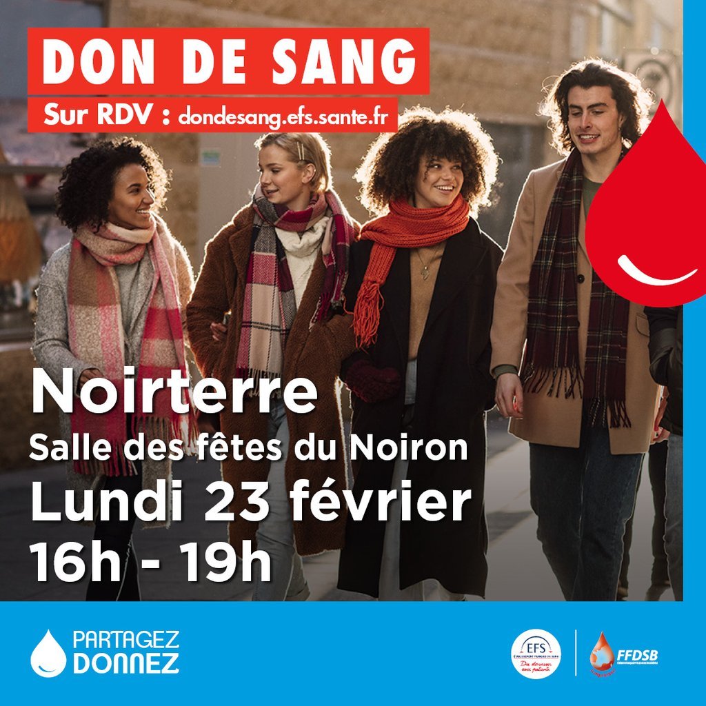 Collecte de sang le 23 février de 16h à 19h à Noirterre (Salle des fêtes du Noiron).